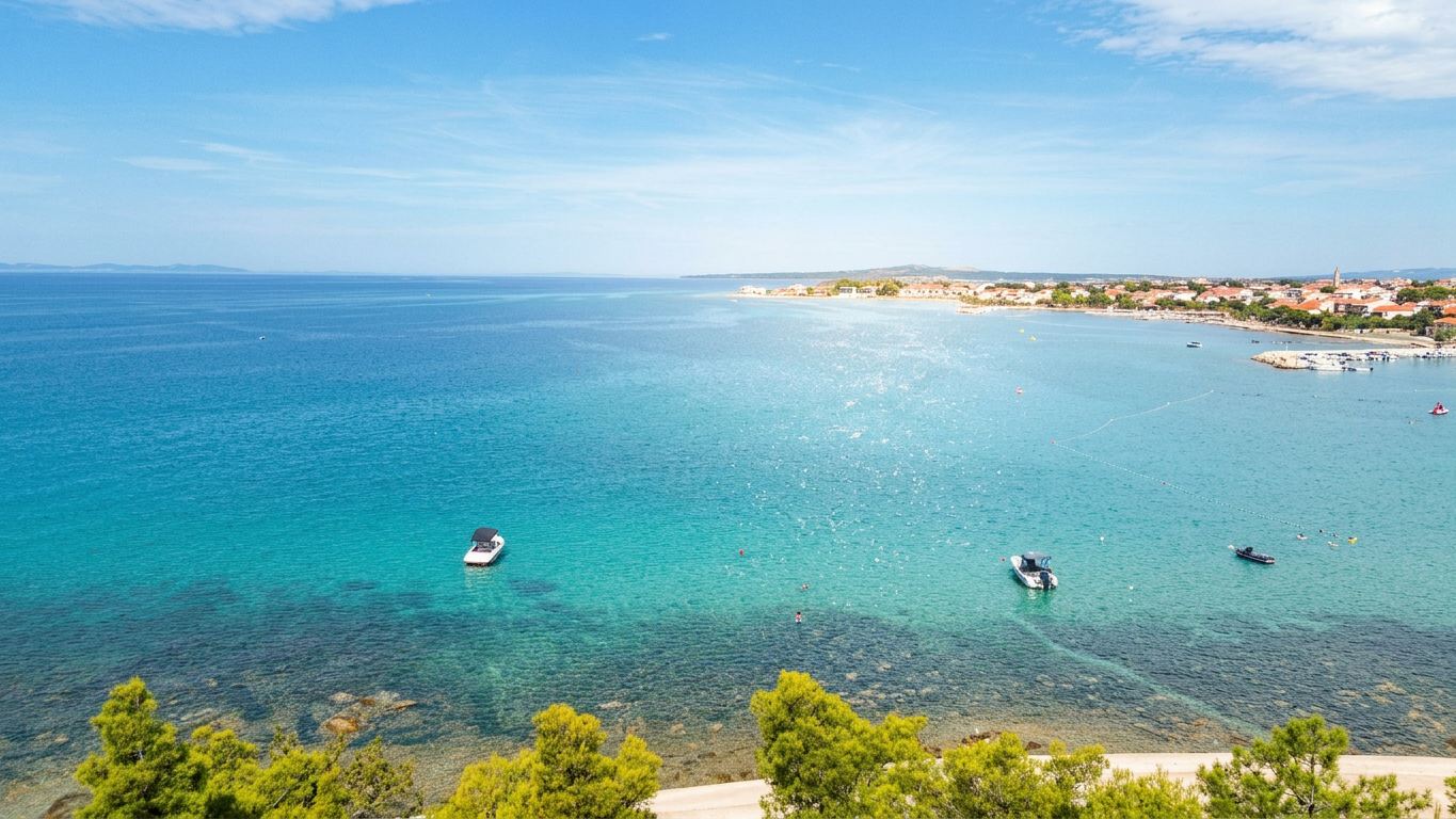 Unser Ferienhaus liegt in Privlaka bei Zadar, direkt am Meer. Genießen Sie unvergessliche Ferientage im Ferienhaus Kurta, direkt am Meer in Privlaka bei Zadar gelegen. Nur 30 m vom Strand entfernt, bietet unser Haus moderne Ausstattung für bis zu 8 Personen: großes Wohnzimmer mit Sat-TV, voll eingerichtete Küche, 3 Schlafzimmer (3x Doppelbetten), 2 Bäder und eine 35 m² Terrasse mit Meerblick.Vor dem Haus führen kleine Wege durchs Wasser, über die du gemütlich zu einer langen Sandbank schlendern kannst. Nur wenige Meter nördlich befindet sich das Camp Dalmatia mit einem sehr schönen Sandstrand. Dort findest du zahlreiche Bars, Restaurants und Eisdielen, die zum Verweilen einladen.