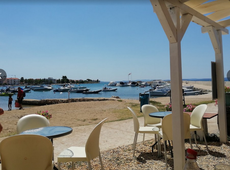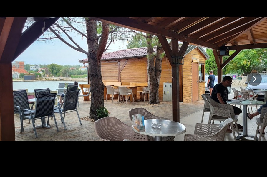 Die Beach Bar Capitano am Strand Plaža Ričina in Vrsi besticht durch ihre entspannte Atmosphäre direkt am Wasser. Neben kühlen Getränken werden auch Snacks wie Hamburger angeboten, während reichlich Parkplätze für einen unkomplizierten Besuch sorgen. Ein perfekter Ort zum Abschalten nach einem Tag am Strand.